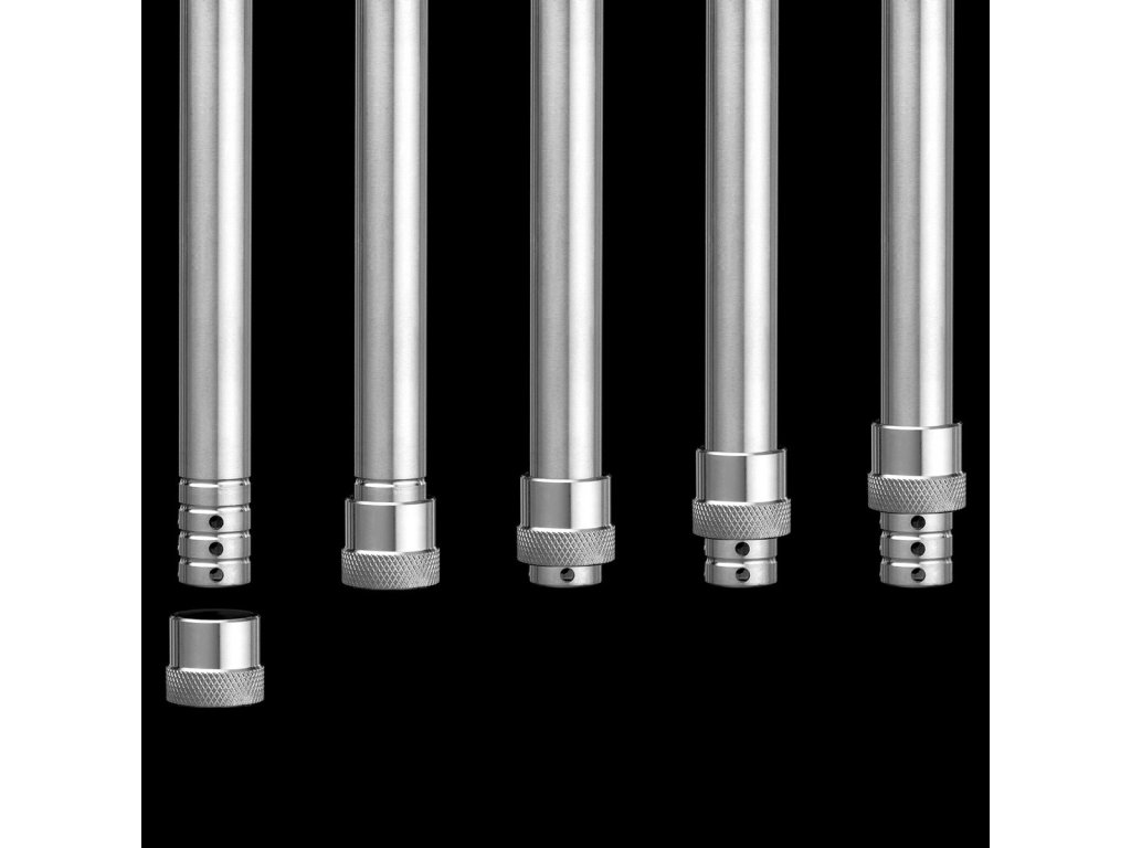 - náustok (rukoväť) vyrobený z eloxovaného hliníka je ľahký, má optimálnu dĺžku a pohodlne sa drží