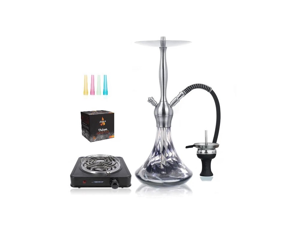 Tento set je výnimočný tým, že v balení Vás očakáva kompletná vodná fajka, kokosové uhlíky, platnička na rozpaľovanie uhlíkov, kliešte na uhlíky a hygienické náustky. Stačí si teda zaobstarať náplň do vodnej fajky - tabak, kamienky alebo pastu - a máte kompletný set, ktorý môžete okamžite začať používať. Ak je vo Vašom hľadáčiku pekná vodná fajka za priaznivú cenu, odporúčame Vám práve tento set značky Aladin.