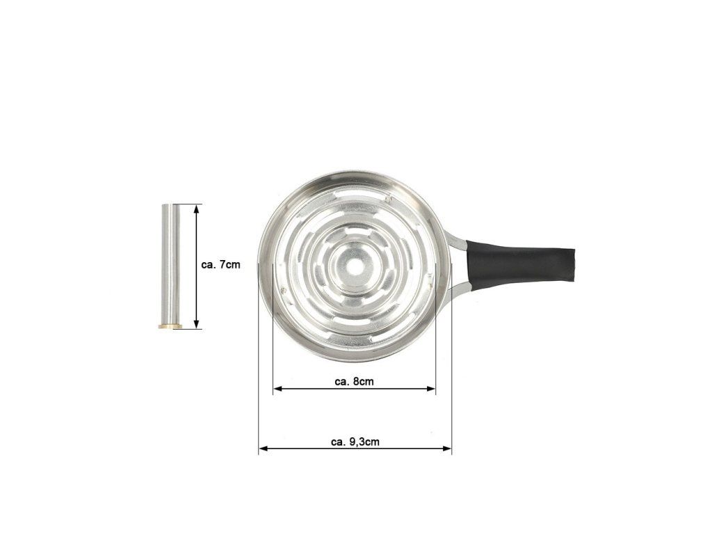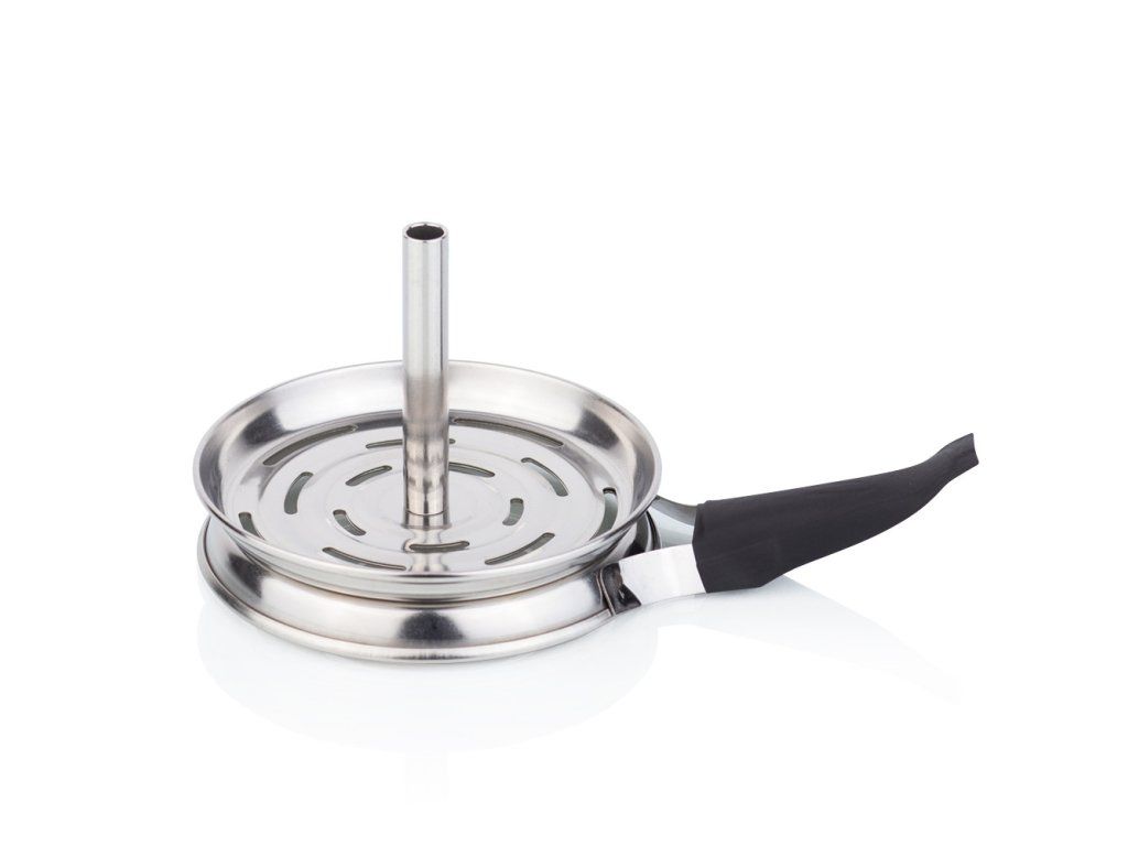 Rúrka mechanizmu AO Pfännchen vytvára tzv. komínový efekt, ktorý zabezpečuje odvádzanie prebytočného tepla a znižuje riziko spálenia náplne v korunke vodnej fajky. Plastový držiak umožňuje jednoduchšie odobratie mechanizmu z korunky a znižuje tak riziko kontaktu horúceho kovu s kožou. Tento set odporúčame používať s kokosovými uhlíkmi (briketami) do vodnej fajky.