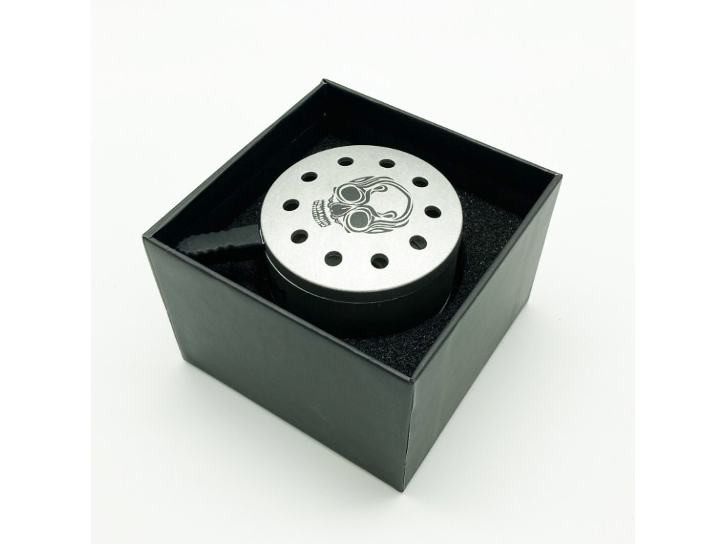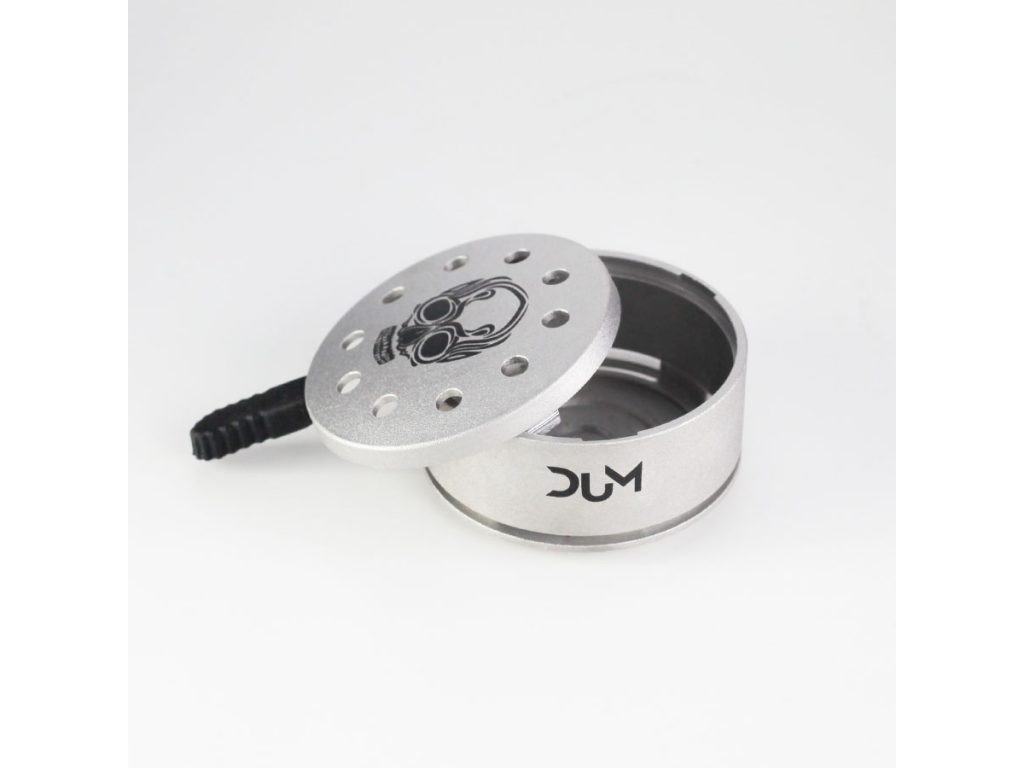 DUM Skull Dome upúta najmä svojim jedinečným dizajnom a jednoduchou konštrukciou. Na jeho výrobu bol použitý vysokokvalitný hliník s pieskovanou povrchovou úpravou. Odvetrávanie, resp. prívod vzduchu sú zabezpečené otvormi po obvode a na vrchnej aj spodnej časti. DUM Skull Dome je zhotovený tak, že vrchná časť sa po miernom otočení zacvakne o spodnú časť a celý mechanizmus tak môžete bezpečne a pohodlne odniesť bez použitia klieští na uhlíky alebo iných pomôcok. Výborne pasuje najmä pod korunky Saphire, KS Appo Tornado alebo pod silikónové korunky s vyvýšeným okrajom. Ohľadom kompatibility s inými korunkami nás pokojne kontaktujte.