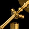 Vodná fajka Aladin MVP 360 Gold-Blue je nadštandardná shisha v plnej výbave. Na výrobu tela bola použitá nerezová oceľ V2A, pričom zlaté prevedenie jej okrem kvality pridáva aj luxusný vzhľad. Vodná fajka je vďaka použitým materiálom robustná, má vynikajúcu stabilitu a takisto trvanlivosť. V balení je okrem tela a vázy aj silikónová hadica Soft-Touch s náustkom z eloxovaného hliníka a korunka phunnel Optimus s komínovým "Badcha" systémom.