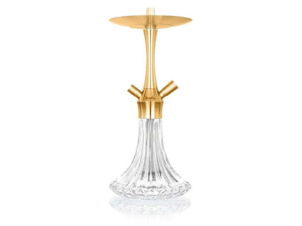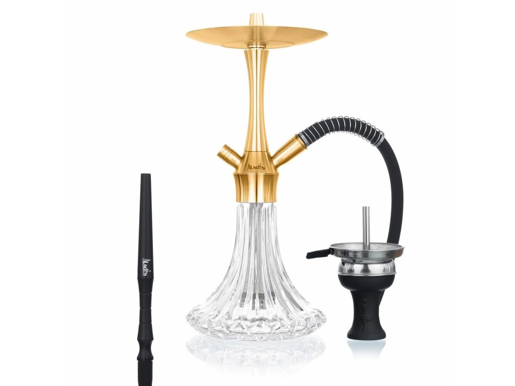 Vodná fajka Aladin MVP A36 Gold-Clear je nadštandardná shisha v plnej výbave. Na výrobu tela bola použitá nerezová oceľ V2A, pričom zlaté prevedenie a vkusne navrhnutá váza jej okrem kvality pridáva aj luxusný vzhľad. Vodná fajka je vďaka použitým materiálom robustná, má vynikajúcu stabilitu a takisto trvanlivosť. V balení je okrem tela a vázy aj silikónová hadica Soft-Touch s náustkom z eloxovaného hliníka a korunka phunnel Optimus s komínovým "Badcha" systémom.