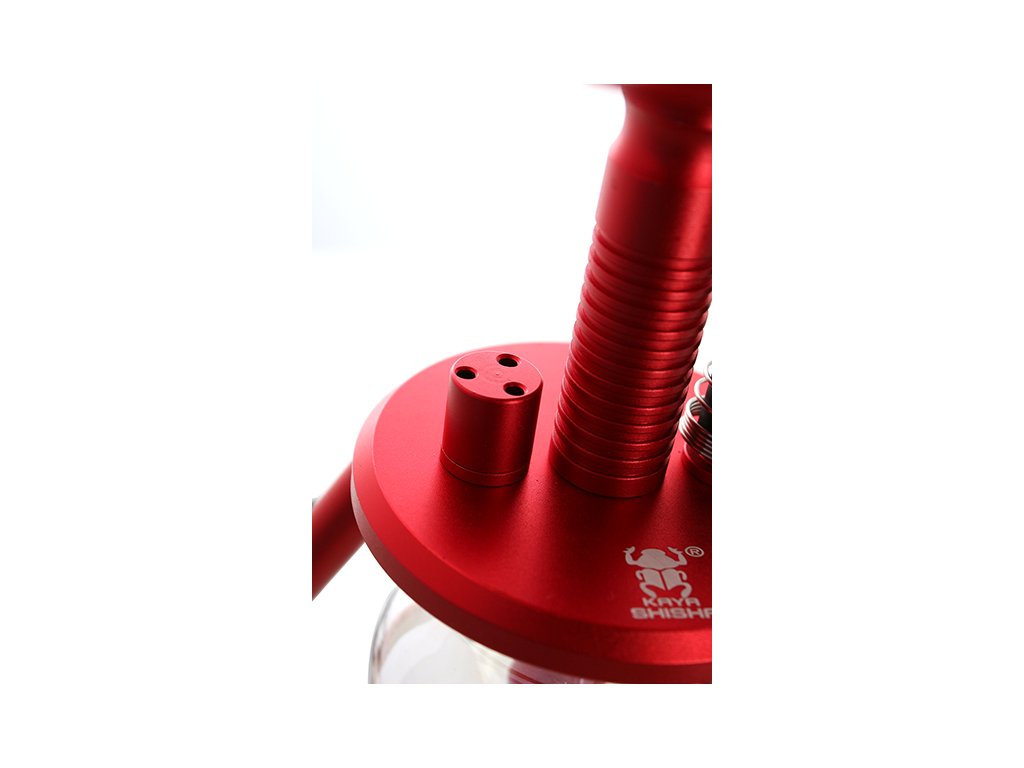 Kaya ELOX ECO Bonfire Red je moderná cestovateľská vodná fajka a je výnimočná najmä svojim unikátnym dizajnom, vďaka ktorému je zabezpečená perfektná stabilita aj na menej rovných povrchoch. Balenie vodnej fajky pozostáva z priehľadnej sklenenej vázy, hliníkového tela s matnou povrchovou úpravou, silikónovej hadice Soft-Touch s rozoberateľnou hliníkovou rukoväťou a keramickej korunky, kompatibilnej s komínovými mechanizmami alebo systémami HMS na jeden uhlík. Soft-Touch je matná povrchová úprava silikónových hadíc, vďaka ktorej sú oproti bežným silikónovým hadiciam príjemnejšie na dotyk a zároveň aj elegantnejšie pôsobia. Ponorná rúrka do vody je zakončená difúzorom, čo je špeciálny filter, ktorý zabezpečuje lepšiu filtráciu a tichší chod vodnej fajky. Súčasťou balenia vodnej fajky Kaya ELOX ECO Bonfire Red je aj praktická cestovateľská taška, strunka zabraňujúca zalamovaniu hadice a nerezové kliešte na manipuláciu s uhlíkmi. Nechajte sa zlákať týmto jedinečným cestovateľským kúskom z dielní spoločnosti Kaya Shisha!